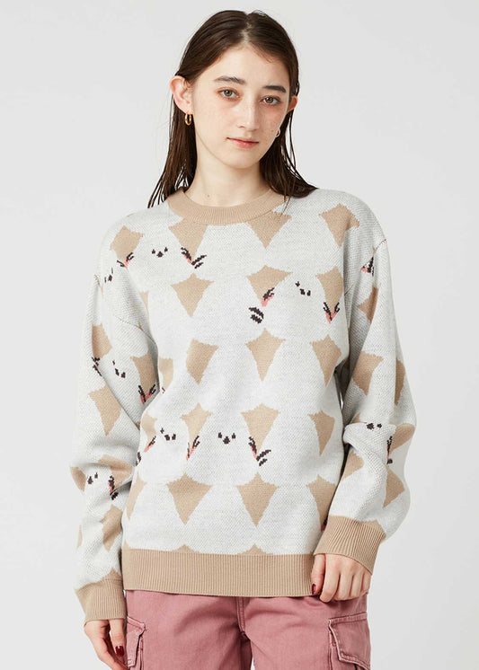 Jacquard Shaggy Volume Sleeve Knit (Lamb Chop Skate)