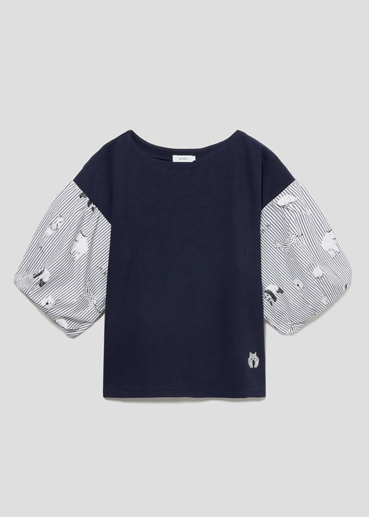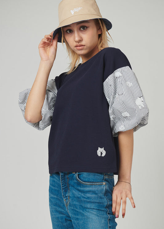 Shirring Short Sleeve Tee (THE FOUR CATS Face)