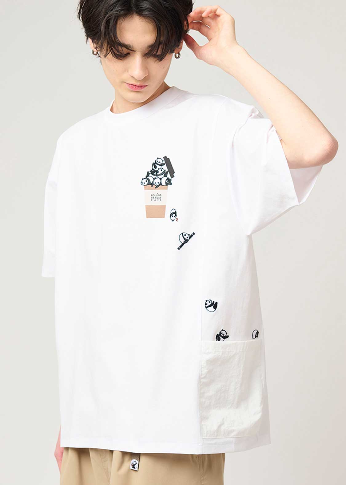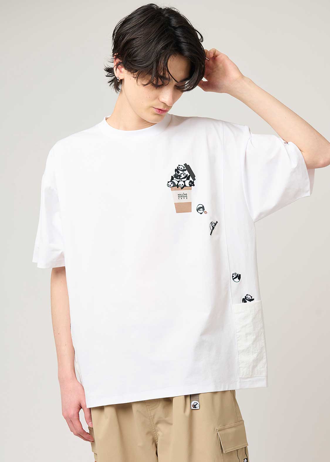 Side Pocket Big Silhouette Short Sleeve Tshirt (Rolling Pandas Cafe)