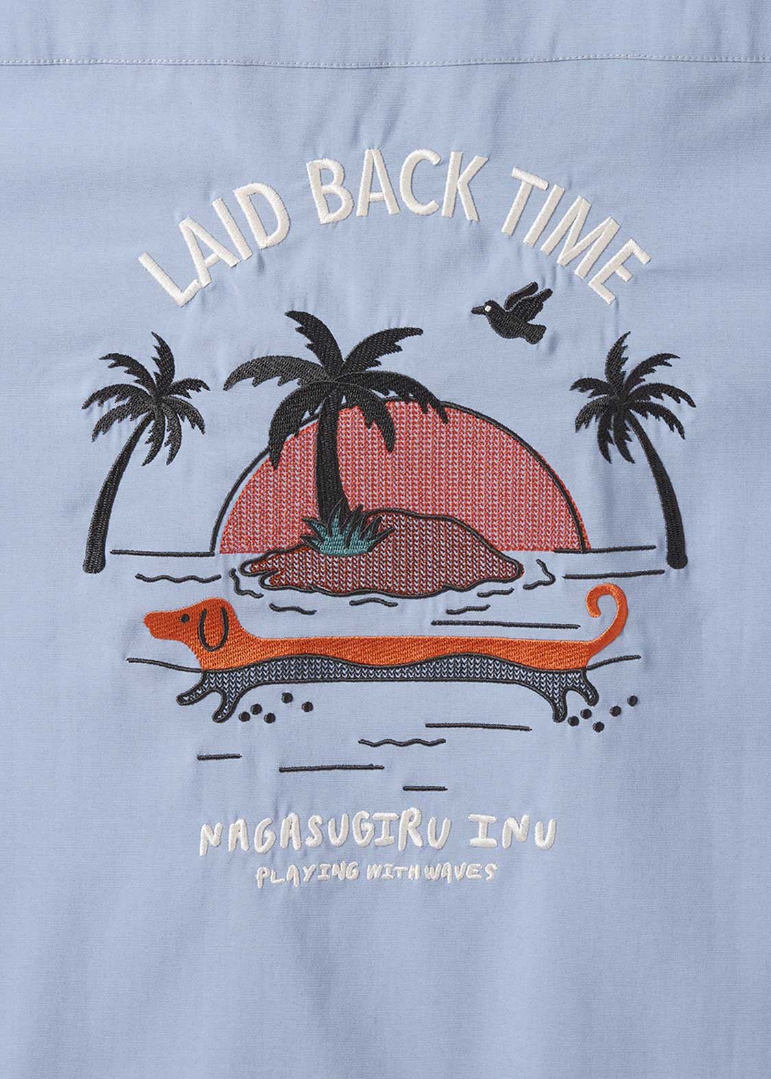 Nagasugiru Inu Playing With Waves | Linen Touch Open Collar Shirt