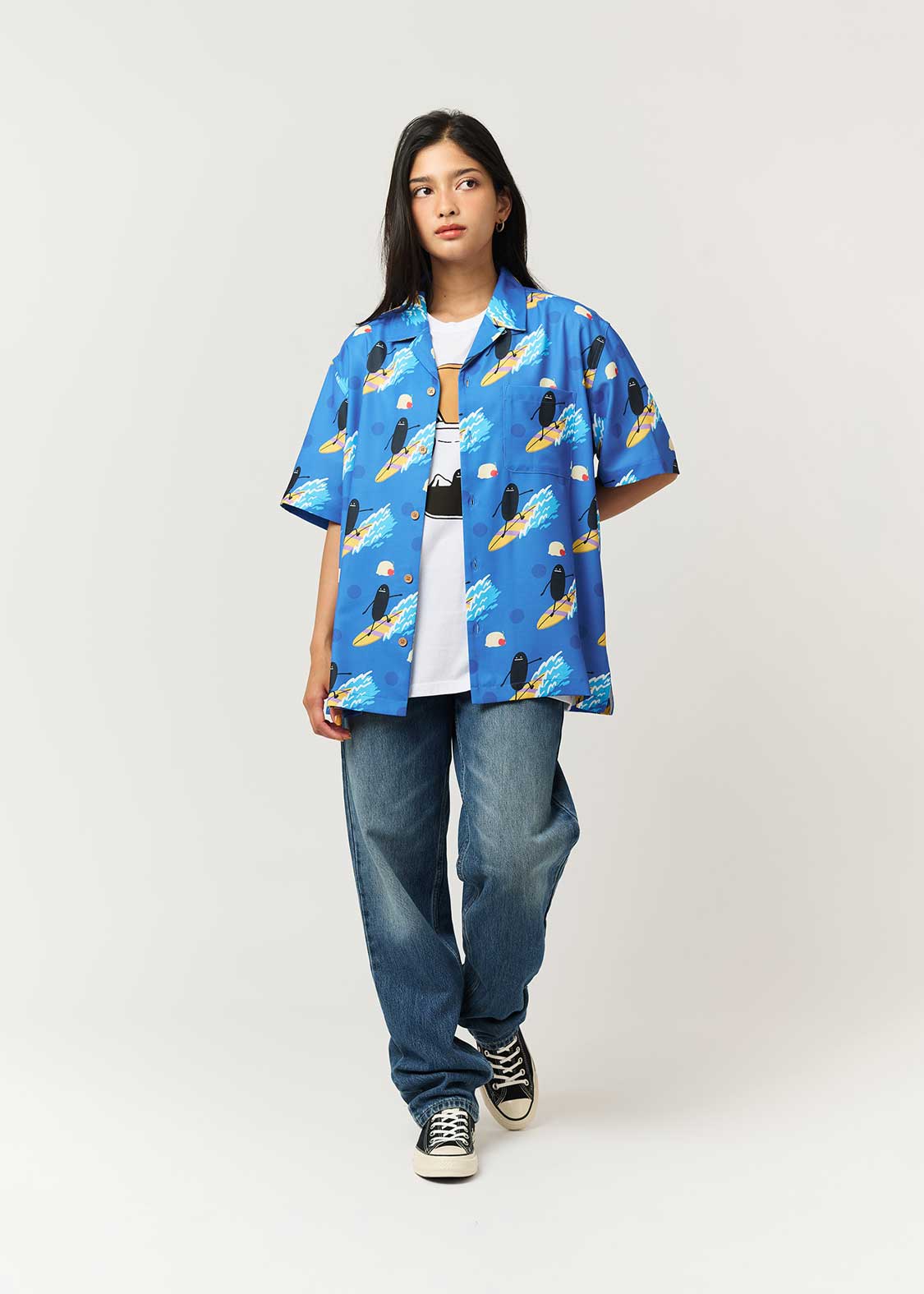 - An open-collar short-sleeved shirt that can be worn with a relaxed silhouette.