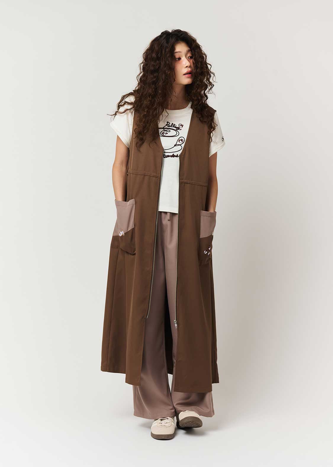 - A 2-way item that can be used as a jacket by opening the zip.